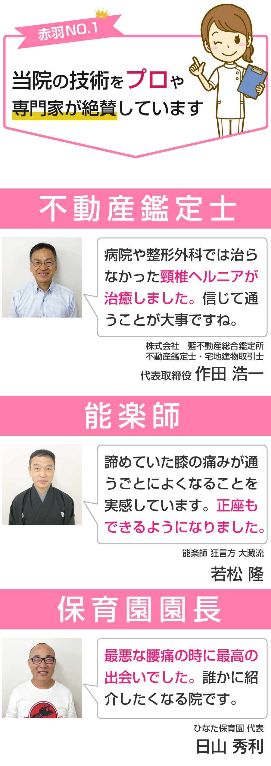 なのに不思議と痛みが楽になる!あとは痛みの原因や正しいケアについての説明をここまでしっかりして下さったのは先生のところ以外は今までありませんでした。