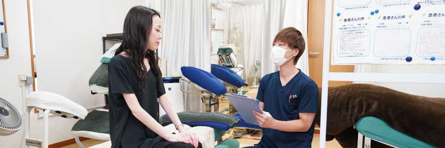 患者さんの本質的な痛みの原因を明確にするためにまずは時間を設けお話をしっかり伺います。こちらからも必要な情報を質問しながら患者さんと院長との間に相違がないよう、お体の問題について理解を深め共有していきます。